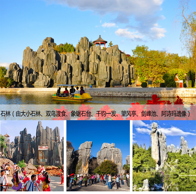 昆明景区:石林风景区,七彩云南风景区。